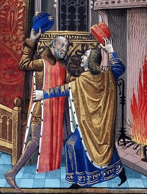 Expert knowledge may be required to identify this illustration from a medieval Valerius Maximus manuscript as that of two Roman noblemen making their peace after a disagreement, but we only need everyday terms to describe the gestures that express their reconciliation: they are lifting their hat and they are embracing each other.